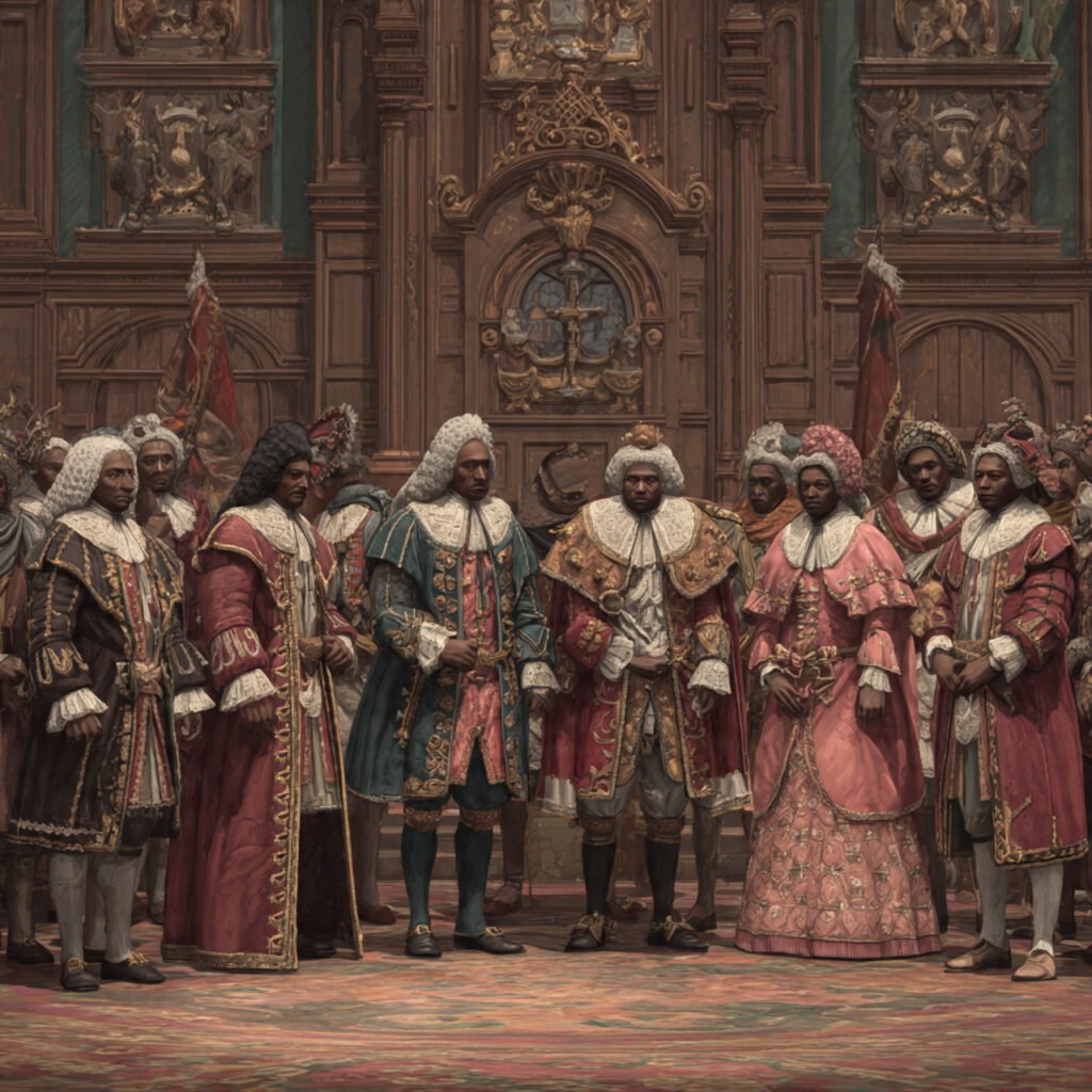 In the same tapestry, the Moors — the dark-skinned royals — stand as symbols of order, science, and grace.
